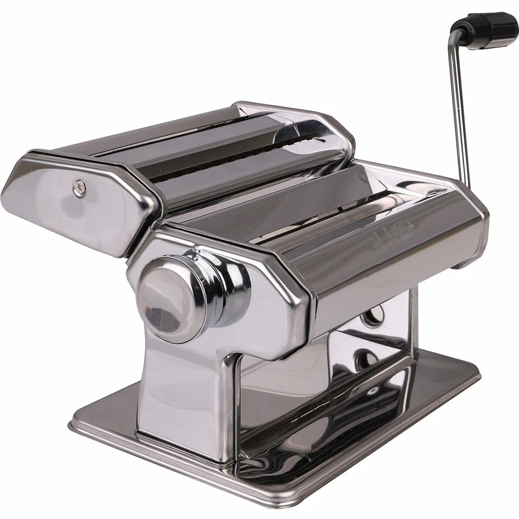 This easy-to-use pasta machine helps you quickly make perfect cuts of spaghetti, lasagna, or more from the comfort of your home. Packed with durable stainless steel and a sturdy base, all it takes is a turn of the crank.