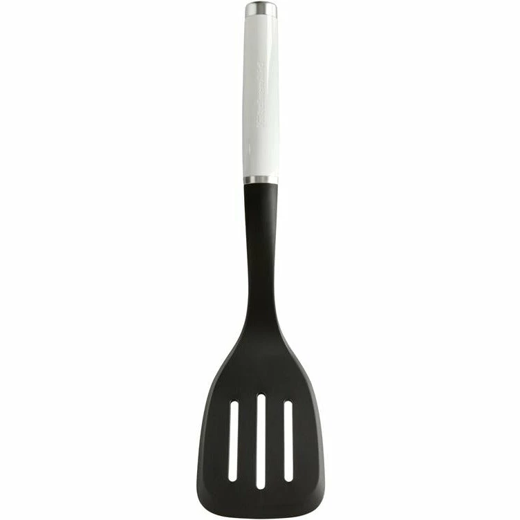 Before you start cooking make sure you have all the right tools for the job with the KitchenAid Classic Slotted Turner Nylon – White. Carefully crafted out of durable nylon for ultimate longevity, this slotted turner makes cooking a whole lot easier. Built to last, this handy kitchenware utensil is heat-resistant for convenient, everyday use and features a white gloss finish with satin chrome accentst that make it perfect for being display while you’re cooking.