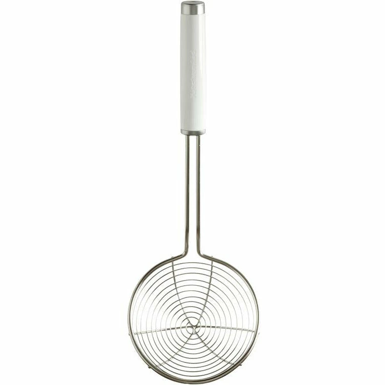 Become a pro chef with all the right tools thanks to the KitchenAid Classic Wire Strainer 13cm – White. Carefully made out of high-quality and durable stainless steel, this strainer is perfect for scooping and draining hot foods without all the mess! Featuring an Asian-style design, this strainer has an extra wide head that allows hot oils or water to drain away quicker when your favourite foods are lifted out. Made with a reinforced handle, this strainer also features a white glossy finish with satin chrome accents that’ll complement any kitchen’s decor when on display.