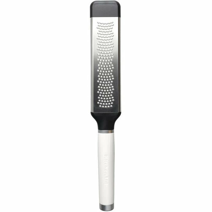 The easiest way to zest a lemon or finely grate food is with a rasp grater like the KitchenAid Classic Zester/Grater – White. Made from strong stainless steel this grater is ideal for grating everything from garlic and ginger to citrus zest and chocolate.The zester uses mirco-serrations that grate in two different directions.