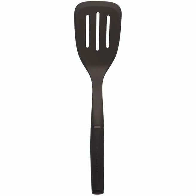 Make sure you have everything you need before you start cooking with the KitchenAid Soft Touch Slotted Turner Nylon – Black. Perfect for lifting anything from fish to roast vegetables, this turner features three slots for draining and tapered edges. Made from heat-resistant and durable nylon, this turner has been reinforced to last so you can rest assured you’ll be able to rely on this product for many meals to come.