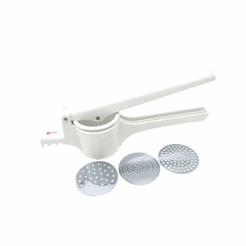 You can mash vegetables, make fruit purees or baby food in one simple press action thanks to the Metaltex Potato Press with 3 Stainless Steel Discs. Each stainless steel disc is perforated with different sized holes so you can adjust the consistency of your puree or mash easily. The press is easy to use, simple fill wit cooked foods then close the two handles like a large garlic crush.