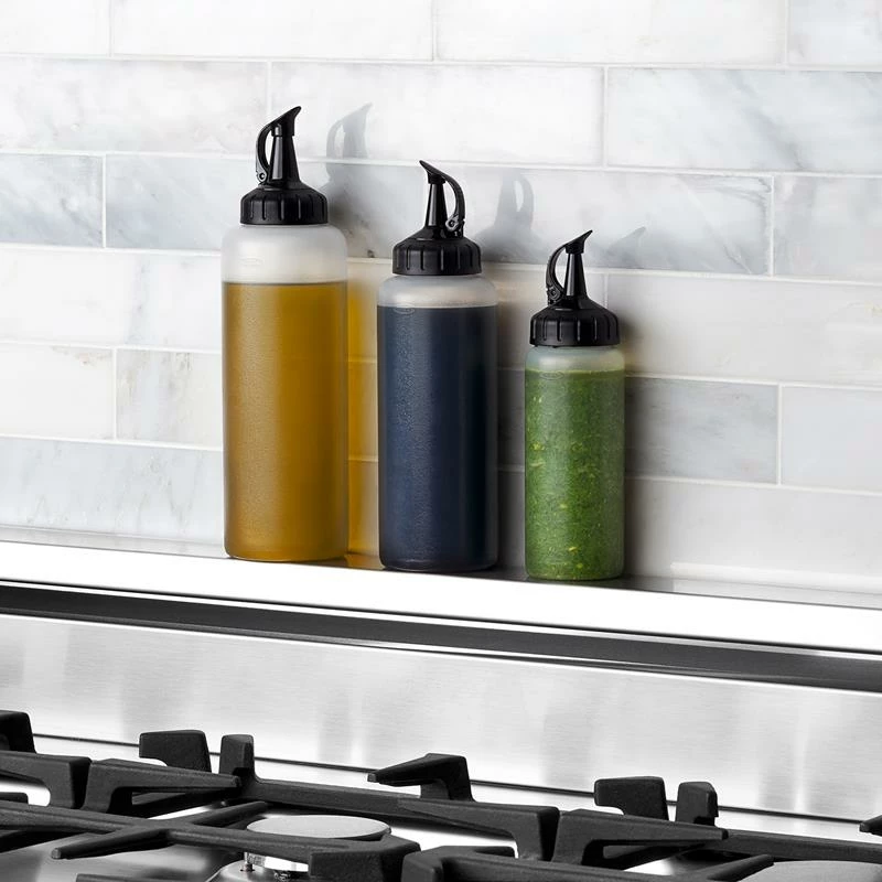 Need a dash of vinegar or a dressing over your salads? You can rely on the OXO Chefs Squeeze Bottle in Small.