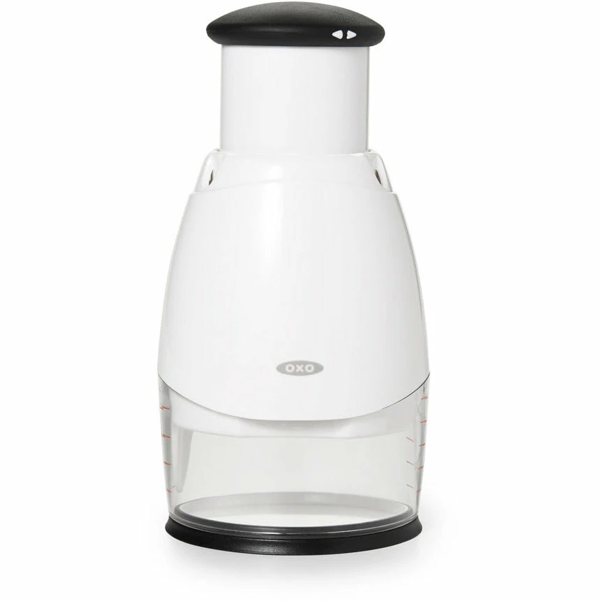 The most efficient, time-saving tool you can use for food prep or cooking, is an OXO Chopper. Whether it’s onions, nuts, vegetables, and other things, with this food chopper, you can chop them fast and clean up really easily.