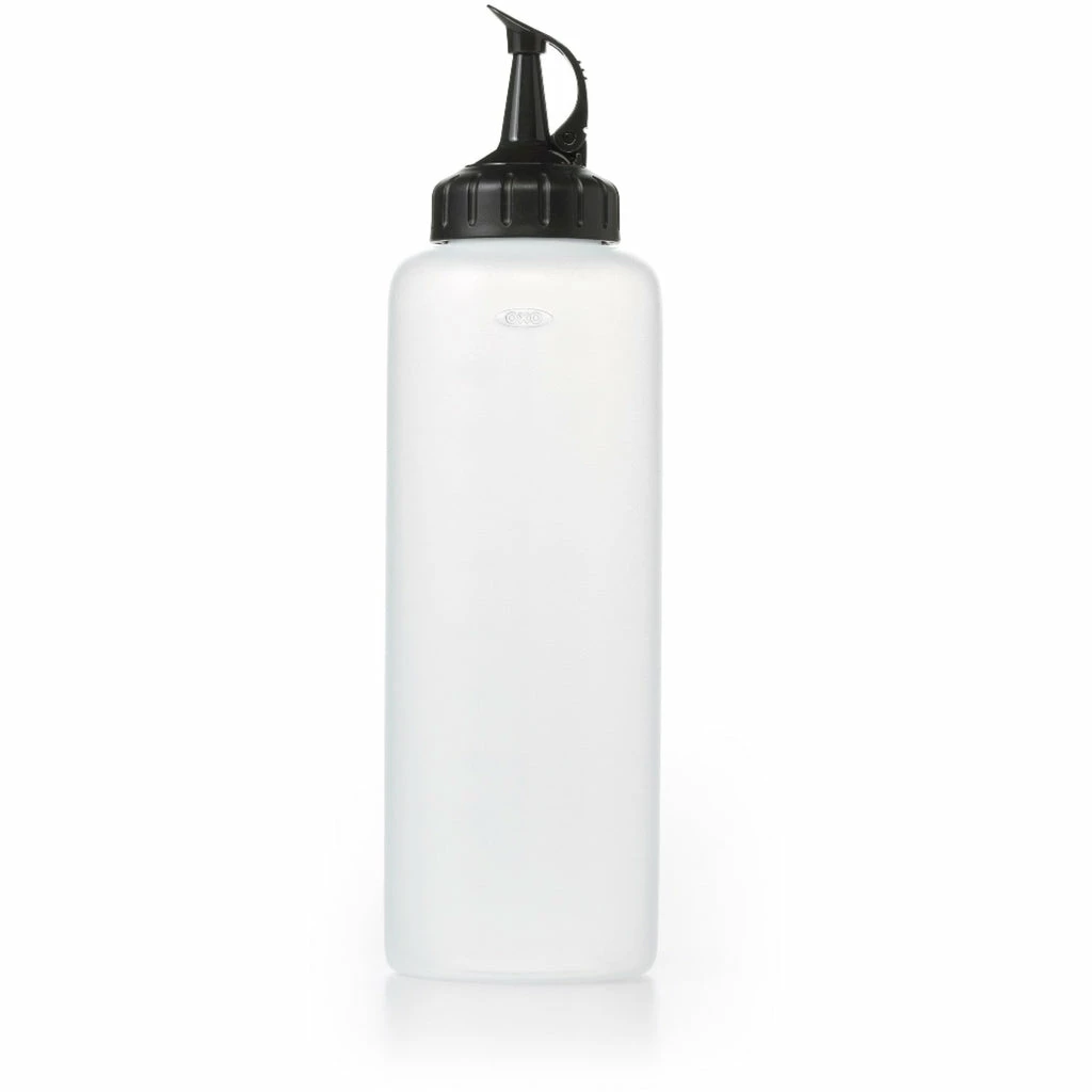 From oil & vinegar to ketchup to chocolate, the Chef’s Squeeze Bottle makes for an ideal tool for drizzling, pouring, plating, or dressing. With interchangeable lids, it gives both a thin tip for precision and detail, and a wide tip for thicker sauces. Its unique cap snaps closed for shaking, and stays open while you squeeze €°ÛÒ saving from any unnecessary messes!