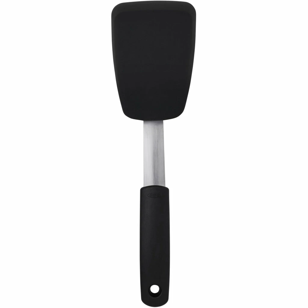 The OXO Silicone Flexible Turner – Small Black is designed to work with you and any recipe in your kitchen. Experience the strength of its stainless steel blade combined with the heat resistance and non-stick friendliness of its silicone outer layer, giving you confidence as it glides easily under foods to flip them while keeping them intact.