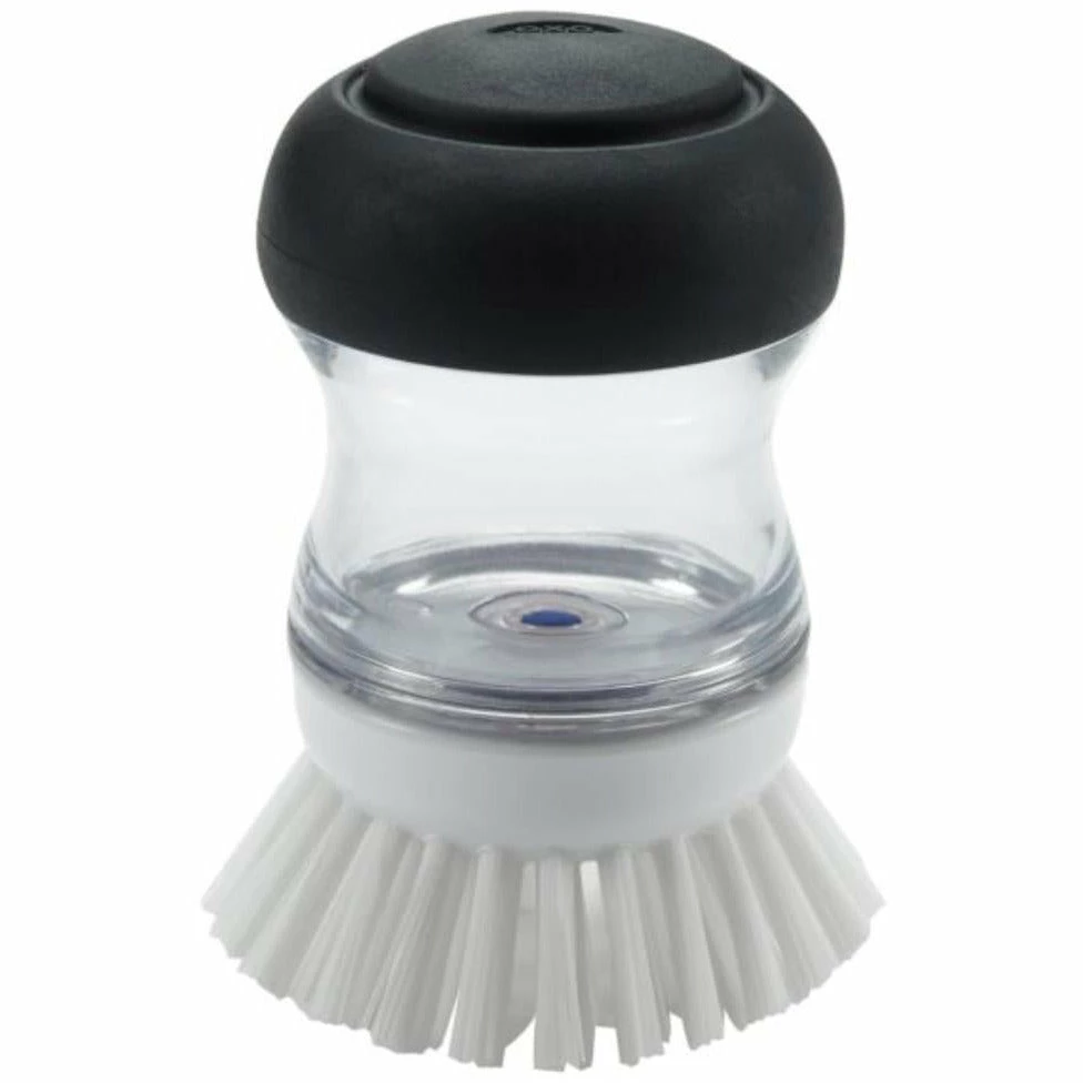 Dispense soap on demand with the Oxo GG Soap Dispensing Palm Brush. Made with durable and high-quality bristles that are completely safe for non-stick cookware, this palm brush makes cleaning a breeze! Specifically designed to dispense soap with the push of a button, this cleaning acessory features a contoured shape for optimal comfort and scrubbing power and is super easy to refill – just unscrew the top to fill it with soap. 1% of Oxo’s annual sales of environmental non-profits.