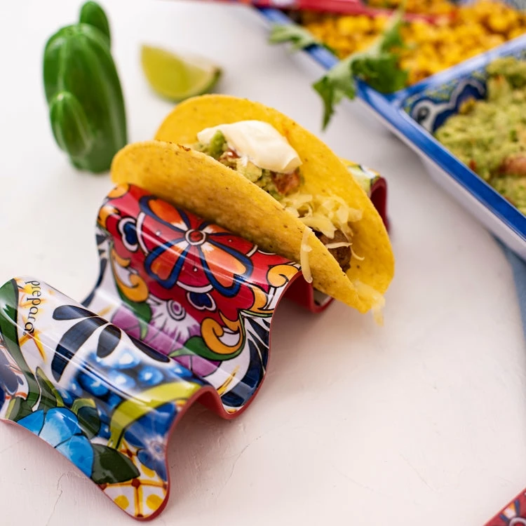 Featuring 4 Multi Taco Holders, 4 Taco Spoons, and 1 Taco Party Bowl, this set is perfect for helping you display, serve, and fill your favourite tacos. Made in a decorative ceramic-look pattern, it also makes a stunning gift for housewarmings or entertaining.