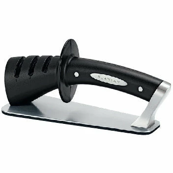 This Scanpan knife sharpener is great for everything from keeping your knives in tip top condition every day to bringing blunt knives back to life. Use the Tungsten Sharpener to regenerate blunt blades, the Diamond Sharpener on your knives every 2-3 months, and the Ceramic Sharpener everyday to get the most out of your knives.