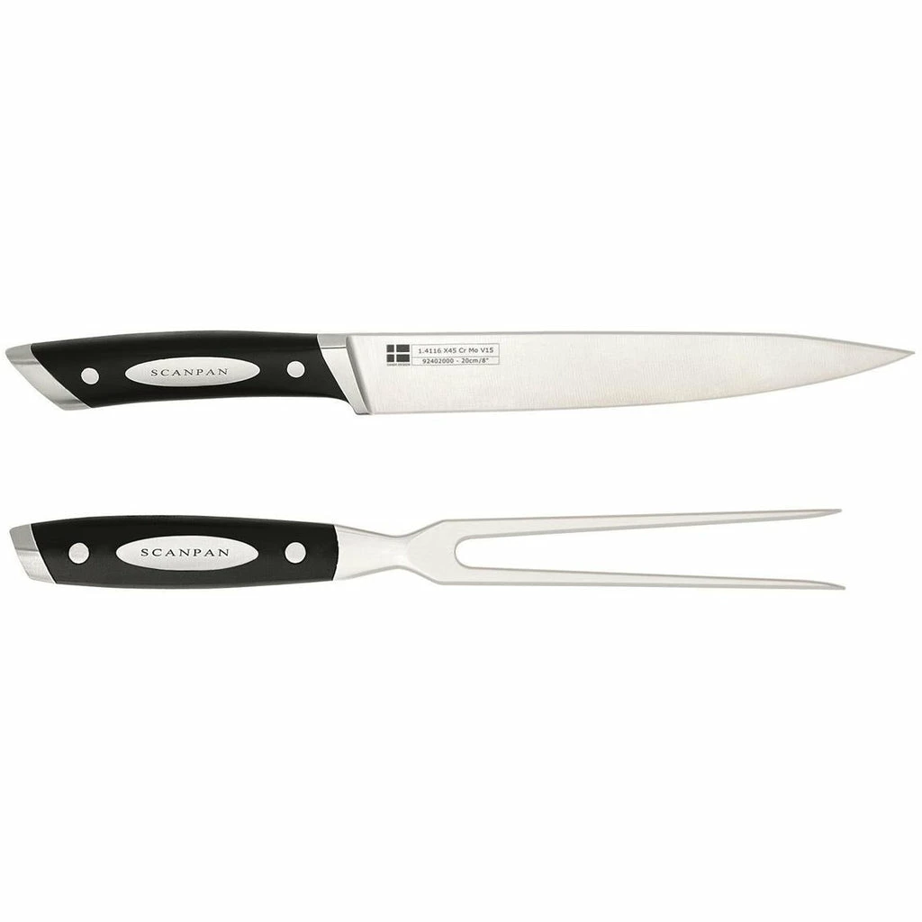 Carve up a roast on with the best tool for the job, the Scanpan Carving Set – 2 Piece Set. Made from high quality German Steel, this two piece set includes a carving knife and a carrving fork that are truly a cut above the rest. The large handles are ergonomically designed and ideal for optimal comfort when carving.